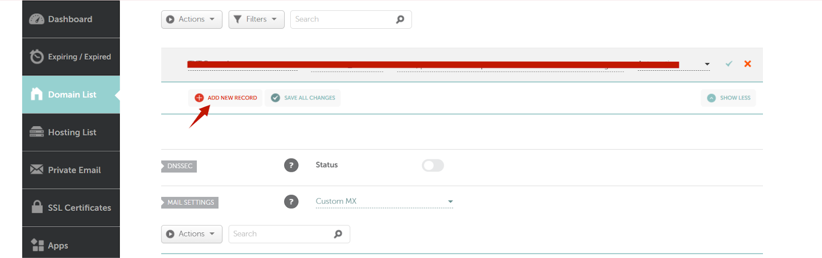 5) "Nieuw record toevoegen om een nieuw TXT record te maken.