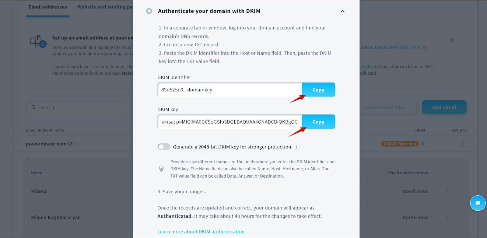 Stappen om GetResponse DKIM-record te verifiëren met PowerDMARC